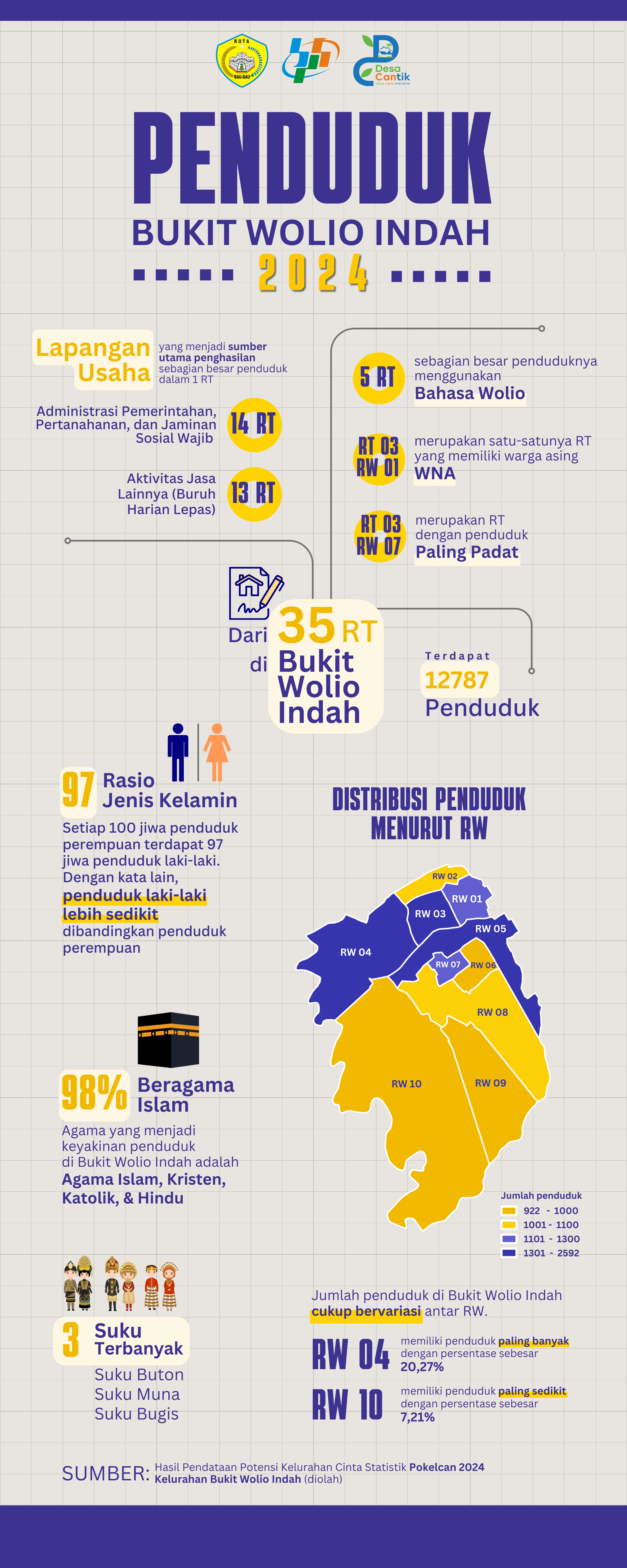 Infografis Penduduk: Kelurahan Bukit Wolio Indah Tahun 2024 - Hasil Pendataan Pokelcan 2024